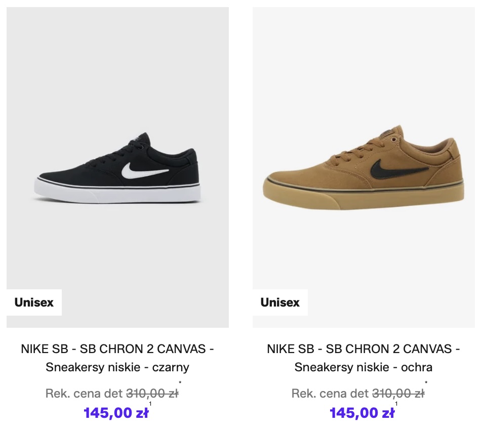 • W sumie w tej kategorii jest ponad 2800 różnych modeli butów w tym takich marek jak: adidas, Converse, Timberland czy Puma.