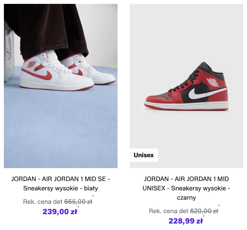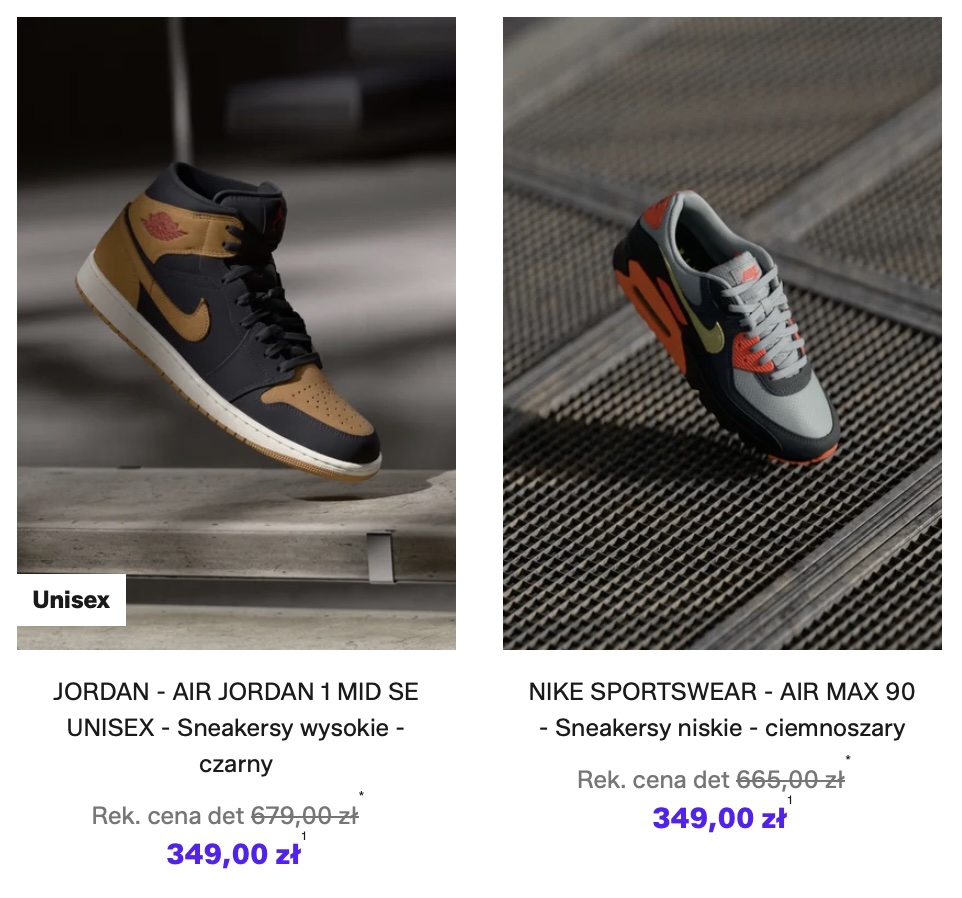- 667 modeli butów JORDAN i NIKE w kategorii „Sneakersy streetwearowe” – https://tidd.ly/4aRHfYZ