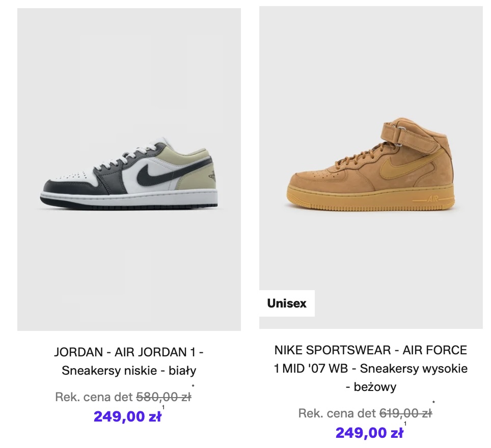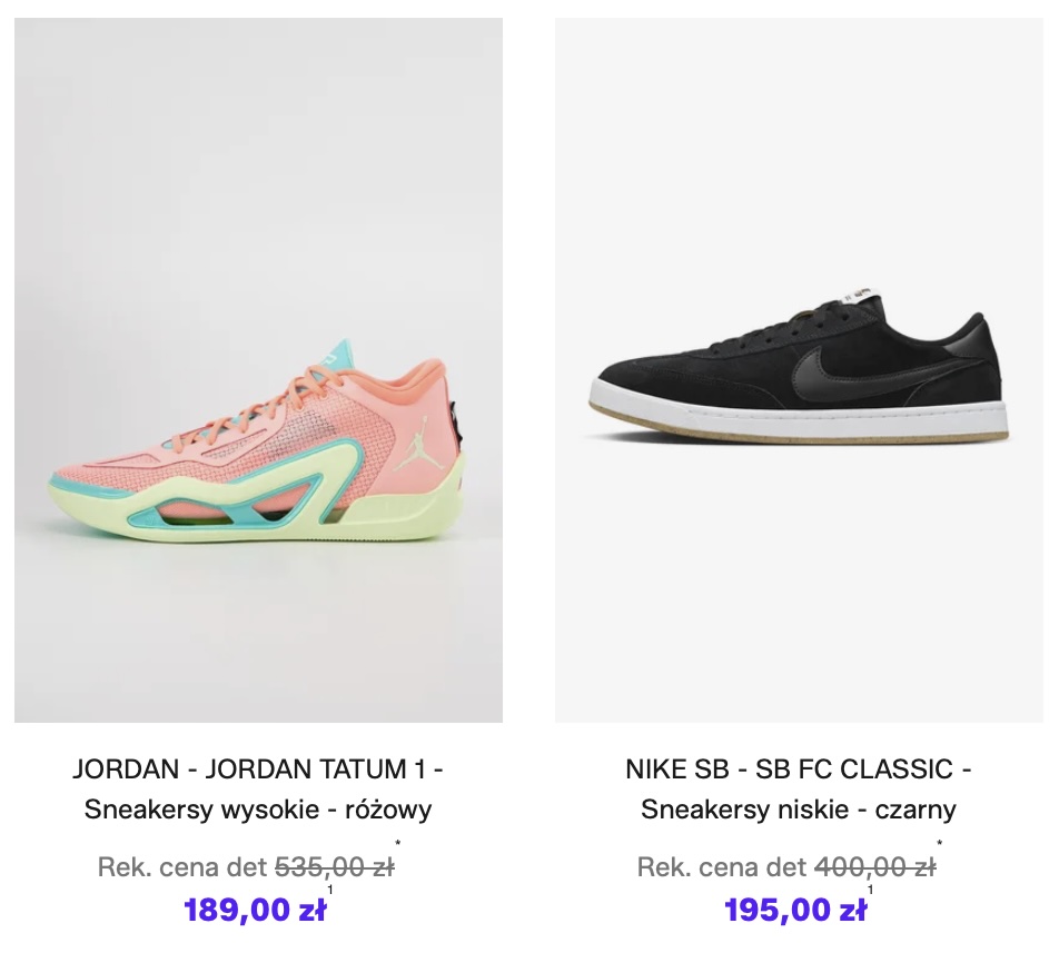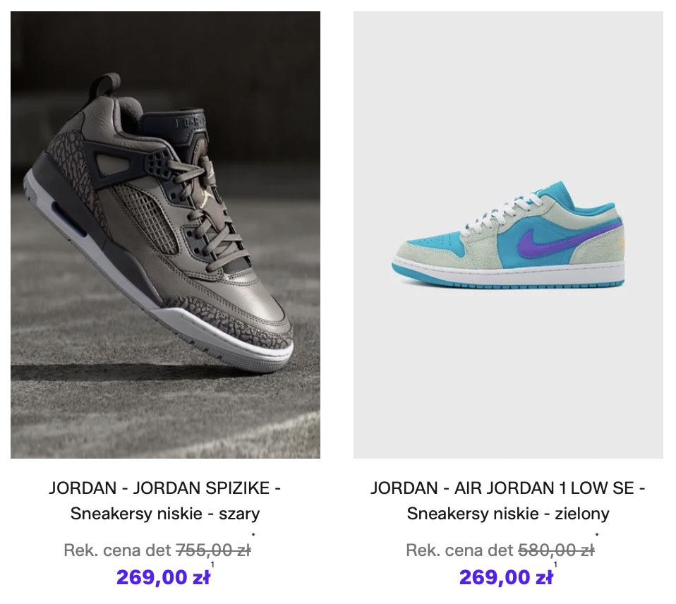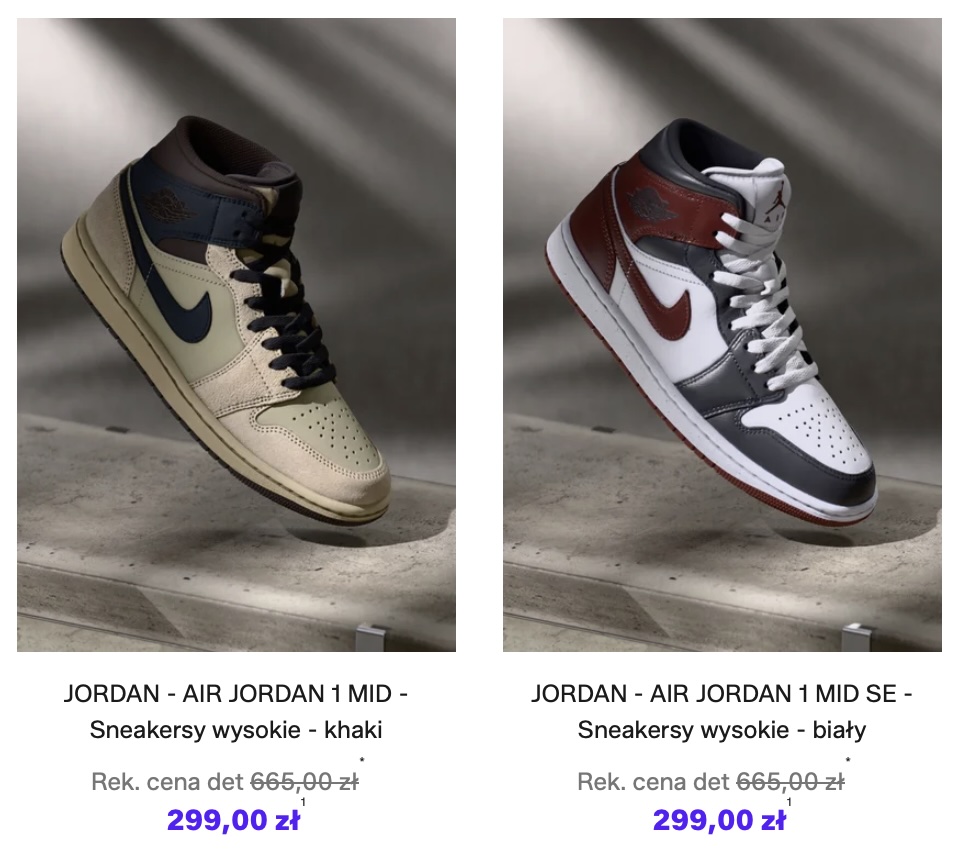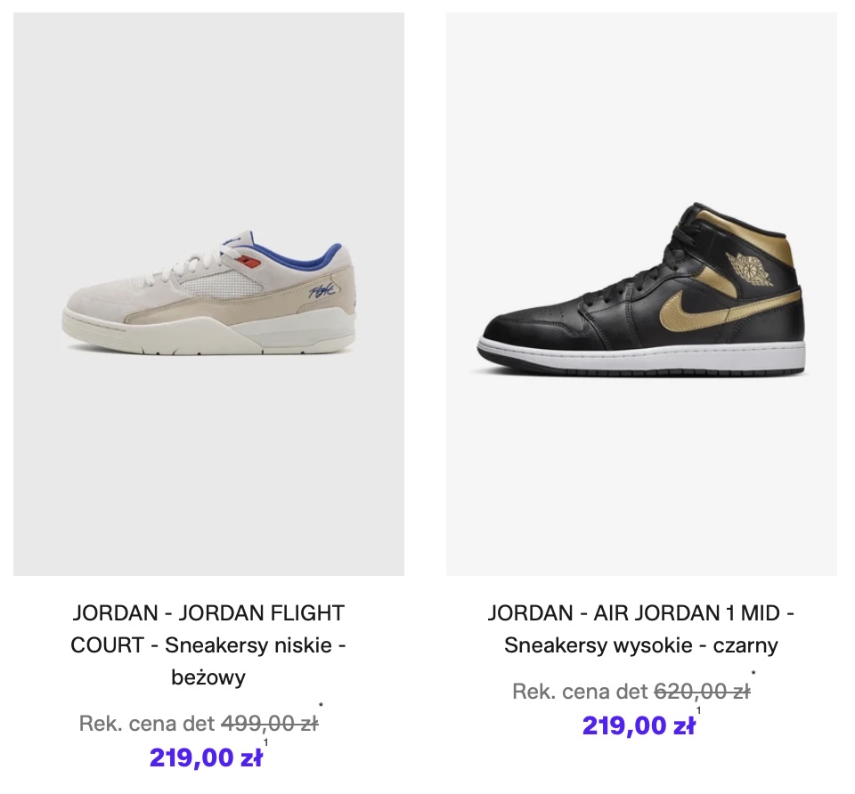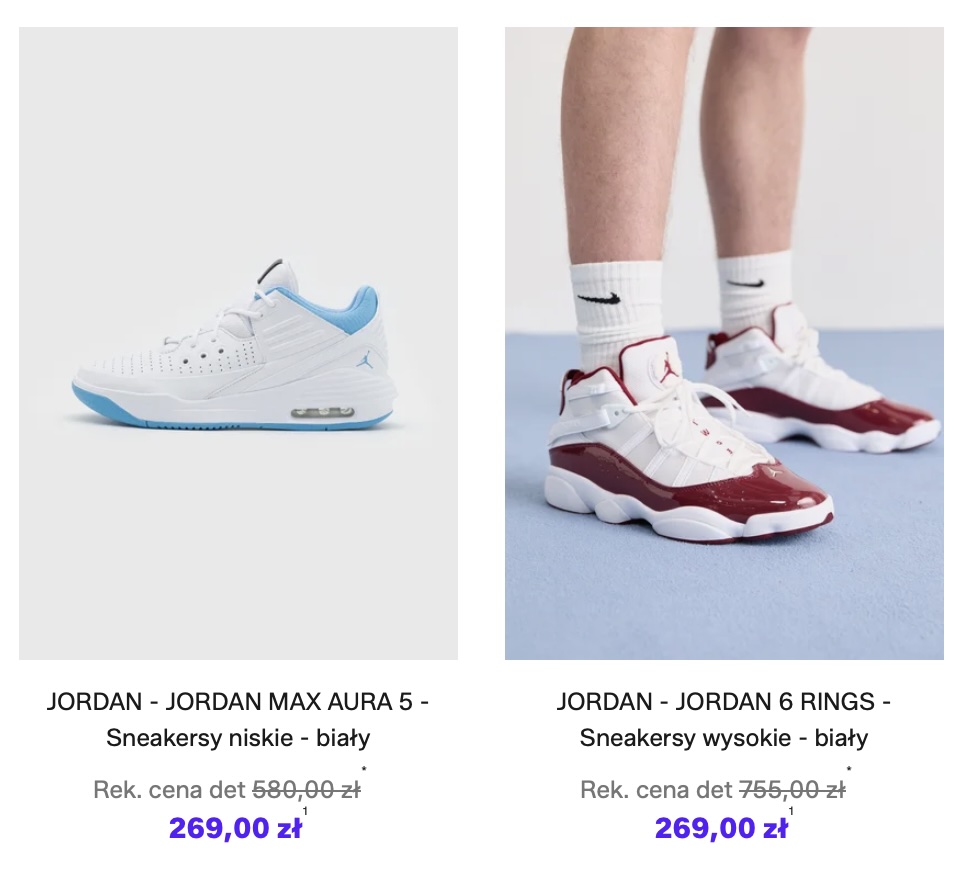 Poniżej kilkanaście przykładów modeli butów NIKE oraz AIR JORDAN, które są dostępne w tej pierwszej promocji „Sneakersy streetwearowe” – z innych wyprzedaży nie robiliśmy screenów, ale warto do nich zajrzeć.