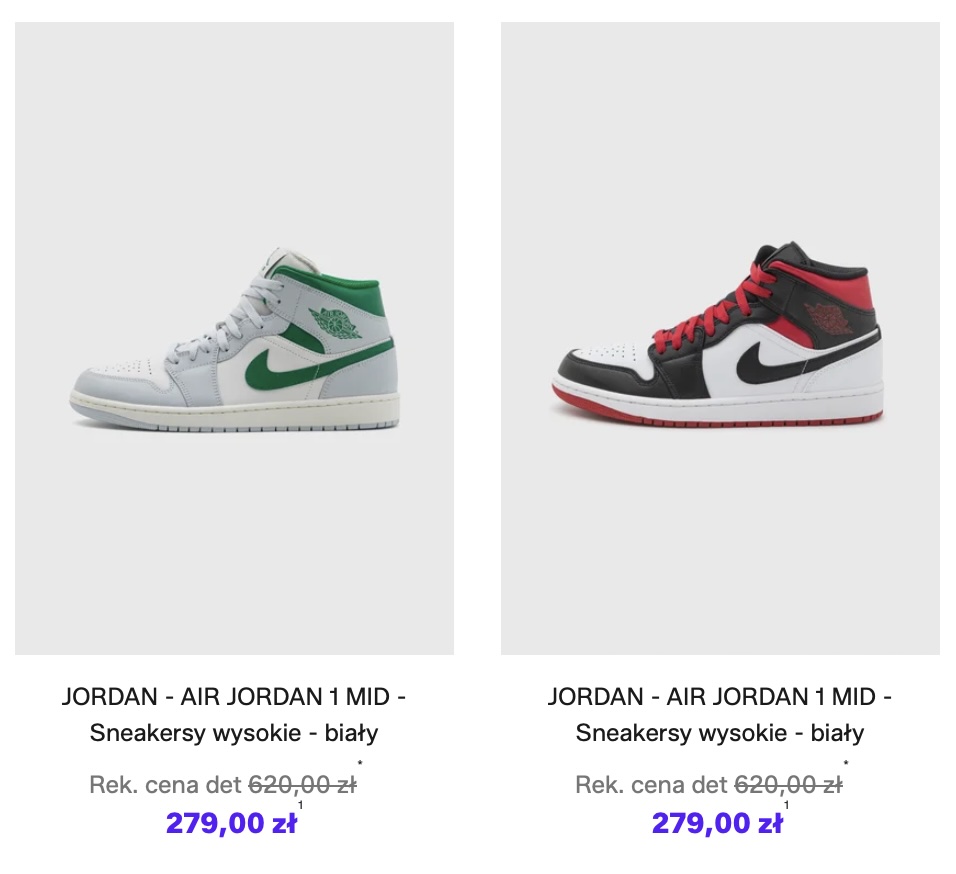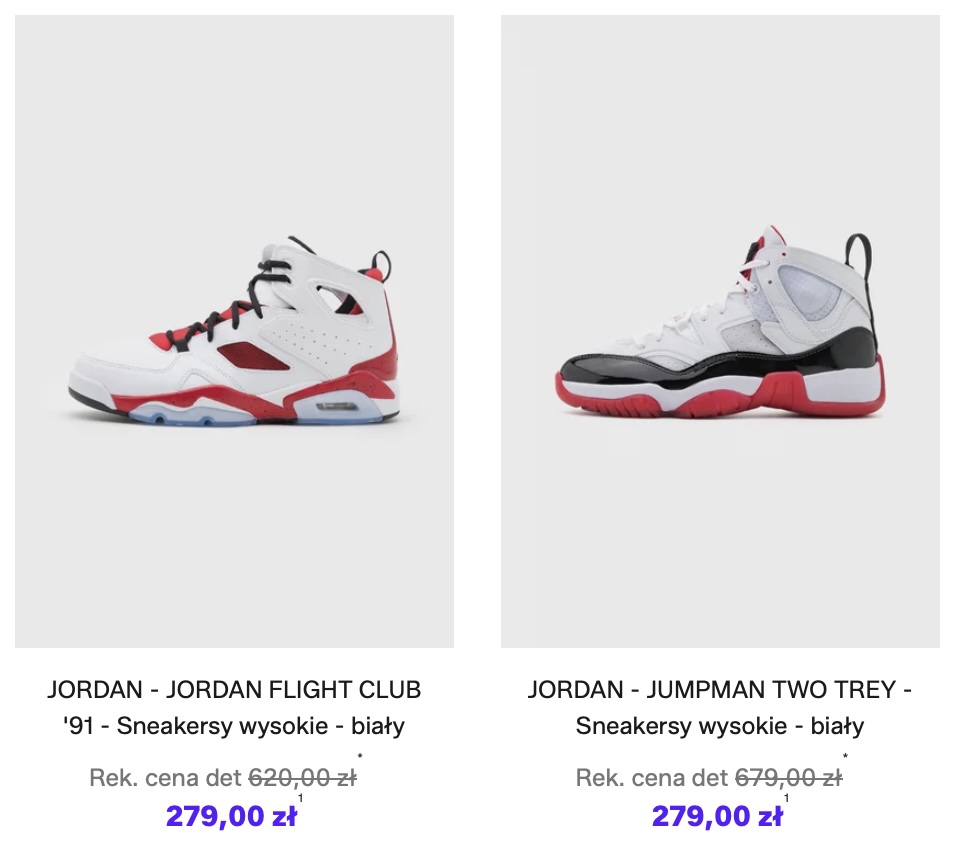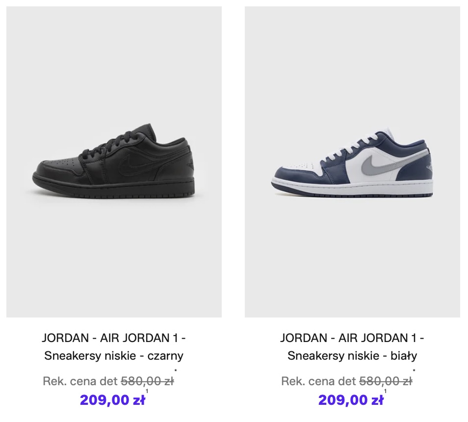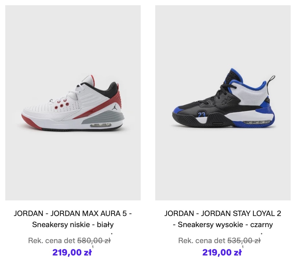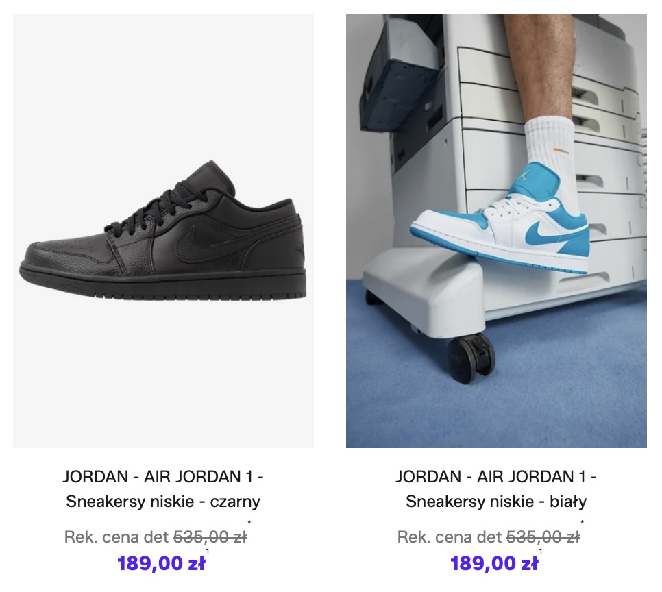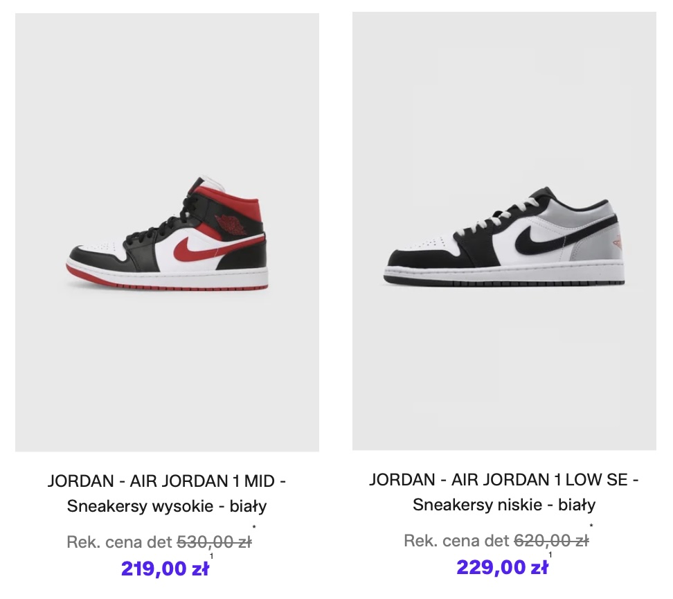 Poniżej kilkanaście przykładów modeli butów NIKE oraz AIR JORDAN, które są dostępne w tej pierwszej promocji „Sneakersy streetwearowe” – z innych wyprzedaży nie robiliśmy screenów, ale warto do nich zajrzeć.
