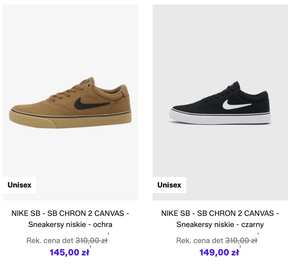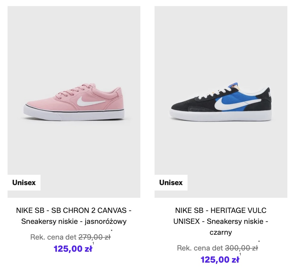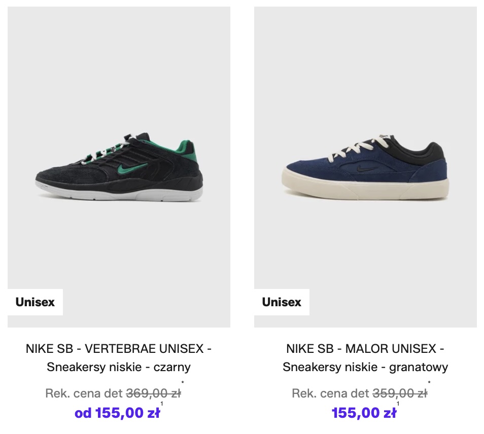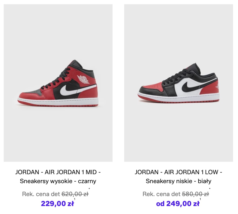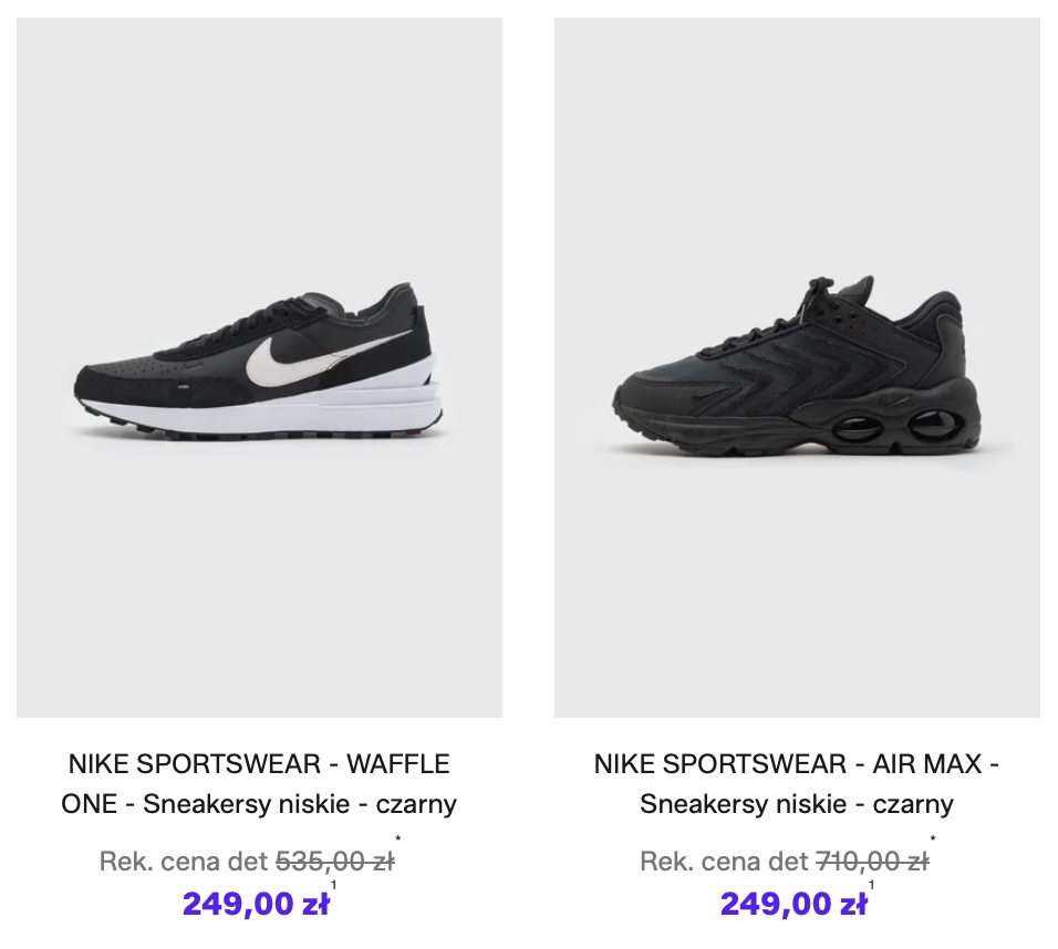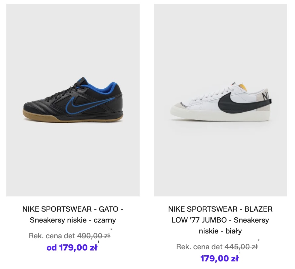 Poniżej kilkanaście przykładów modeli butów NIKE oraz AIR JORDAN, które są dostępne w tej pierwszej promocji „Sneakersy streetwearowe” – z innych wyprzedaży nie robiliśmy screenów, ale warto do nich zajrzeć.