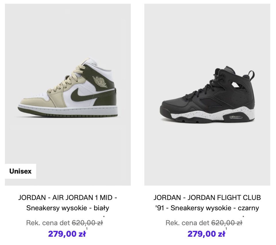 - To nie są typowe promocje JORDAN i NIKE, bo w każdej z tych kategorii są też produkty innych marek. Warto jednak poświęcić chwilę i po przejściu do każdej z nich ustawić filtr, czyli płeć, marka, rozmiar i wtedy zobaczycie na swoich ekranach tylko to, co Was interesuje i jest w Waszym rozmiarze.