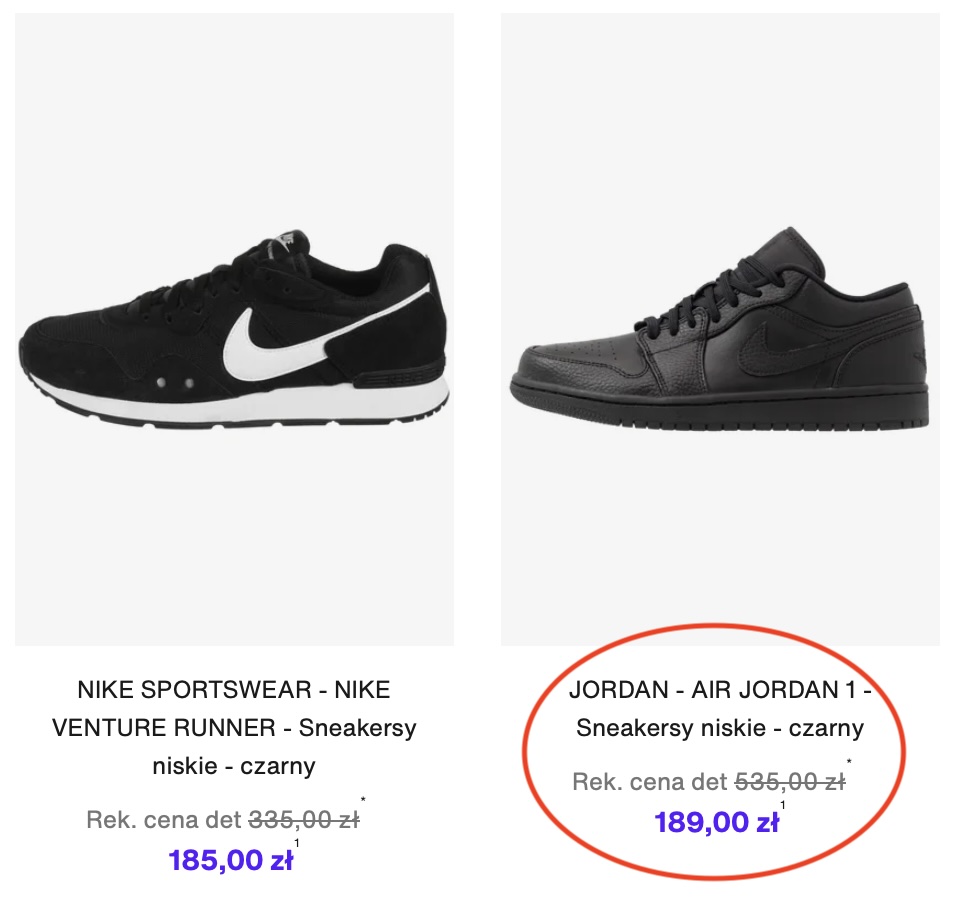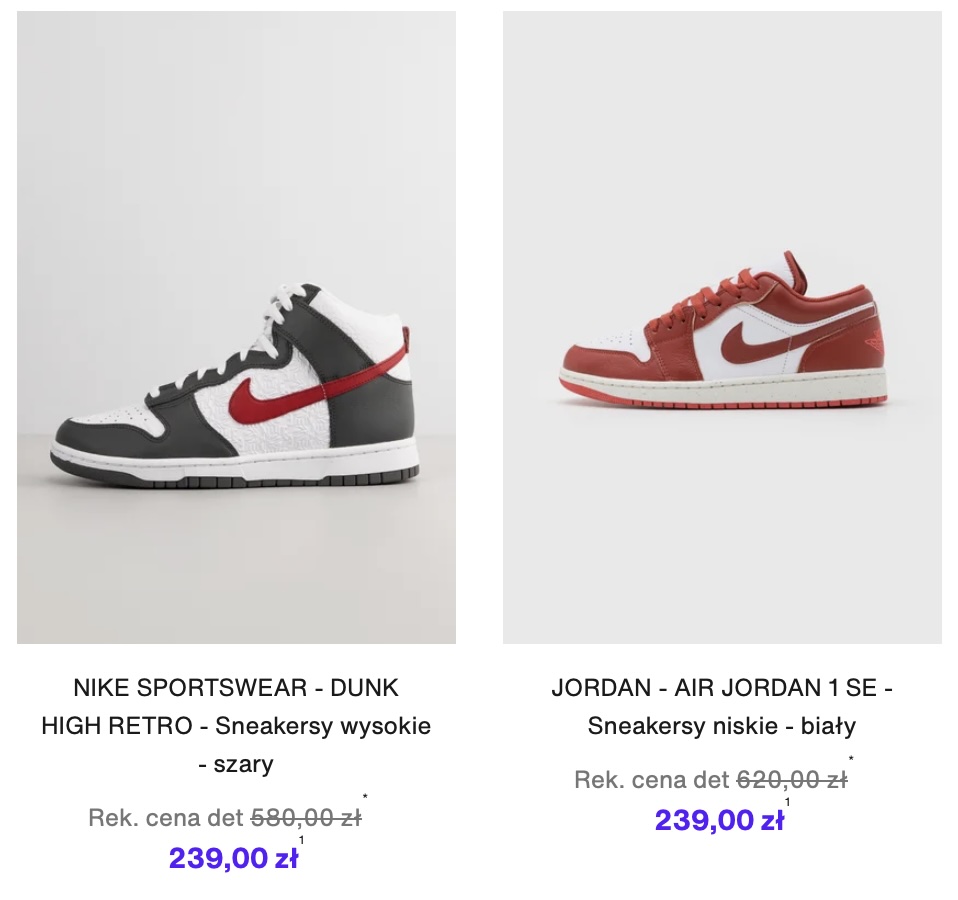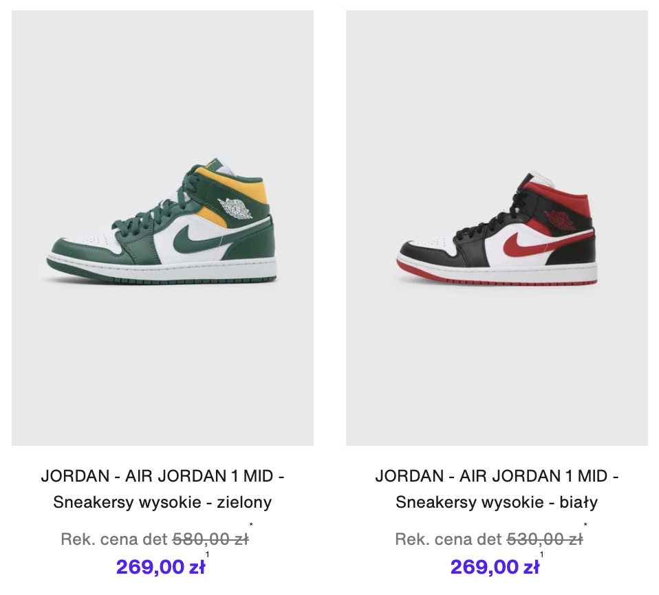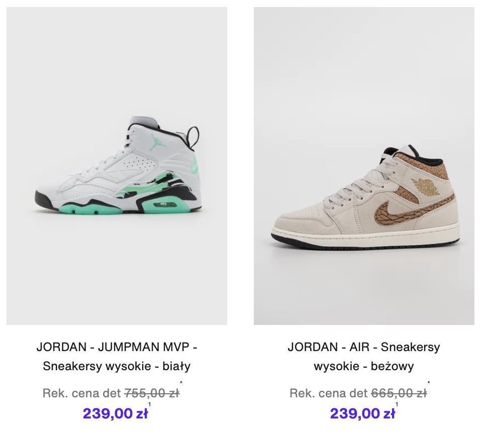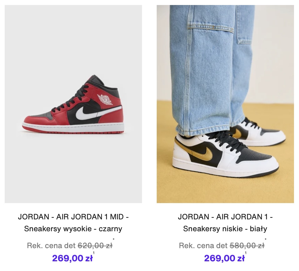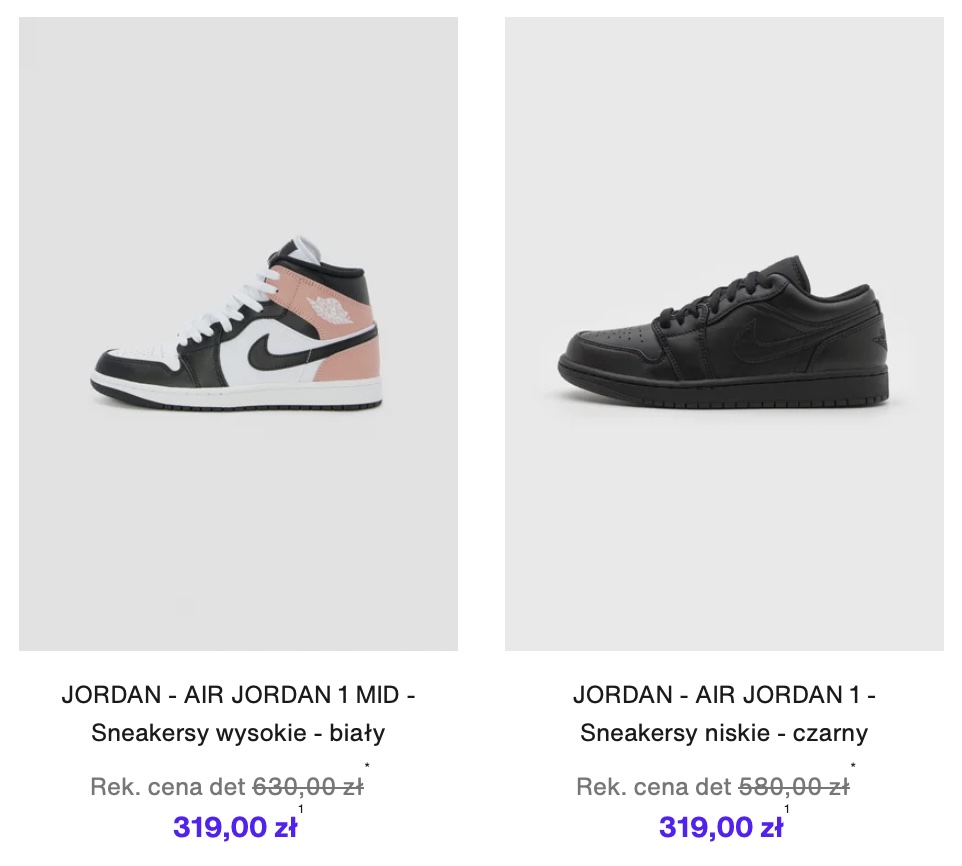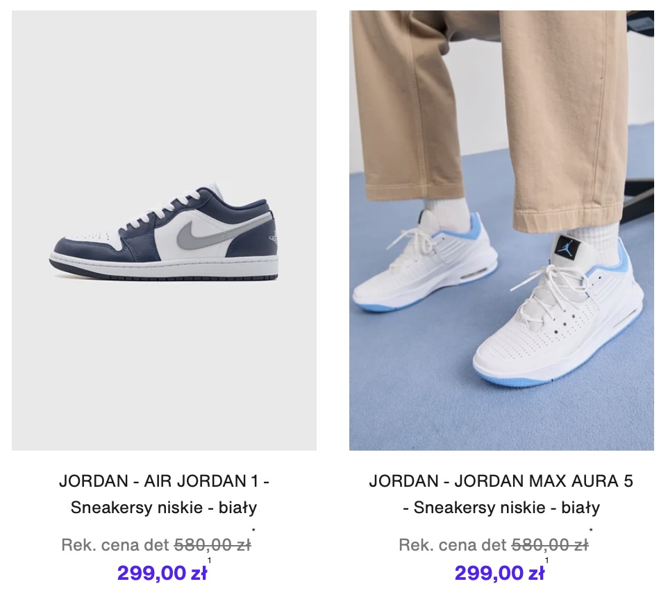 - PRO TIP! Żeby wyświetlić wszystkie produkty jednej firmy ze wszystkich kategorii należy znaleźć zaledwie jeden produkt firmy, której szukamy, a więc np. widzimy buty JORDAN i klikamy w nazwę firmy. Wtedy pojawią nam się wszystkie produkty JORDAN ze wszystkich kategorii, nie tylko buty, ale też ubrania! Wtedy też warto użyć filtra 🙂