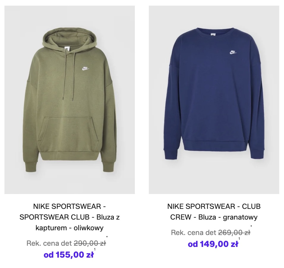 Poniżej kilkanaście przykładów produktów NIKE – butów i ubrań, ale tylko z pierwszej kategorii „NIKE Sportswear”. Dlatego warto przejrzeć też te dodatkowe promocje, które opisaliśmy powyżej!