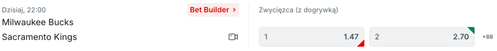 Dziś o godzinie 22:00 Kings zmierzą się właśnie z Bucks. Biorąc pod uwagę wszystkie informacje, które zostały przedstawione wyżej, nie powinno dziwić, że to właśnie Milwaukee są faworytem bukmacherów. Eksperci Superbet szacują, że to Kozły wyjdą zwycięsko z tego pojedynku, oferując kurs 1.47 za ich zwycięstwo