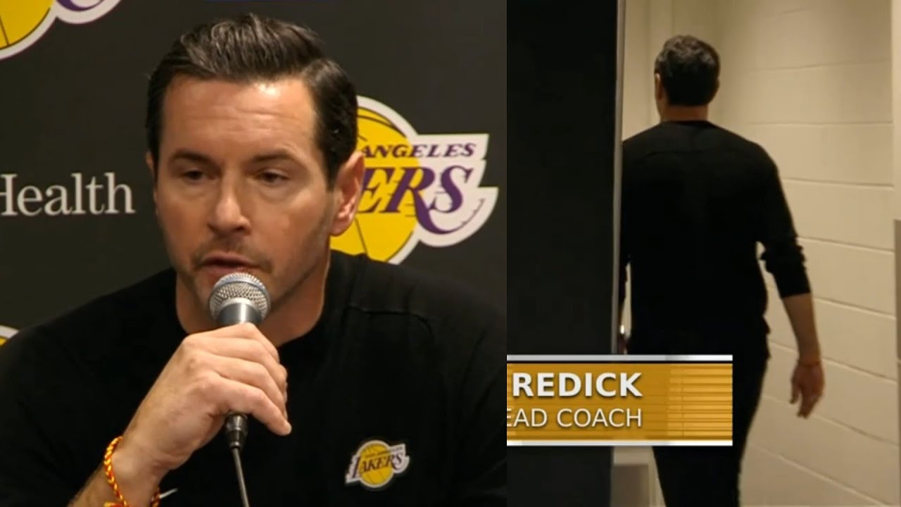 — Czy w trzeciej kwarcie zdałeś sobie sprawę, że to nie będzie wasza noc lub przynajmniej pierwsza piątka nie będzie osiągnąć celu? — spytał inny dziennikarz. — Zrozumiałem to w pierwszych dwóch minutach spotkania — odparł Redick. — Co zobaczyłeś w tych pierwszych dwóch minutach spotkania? — dopytał dziennikarz. — Nic — odpowiedział trener Lakers. Na tym konferencja się skończyła.