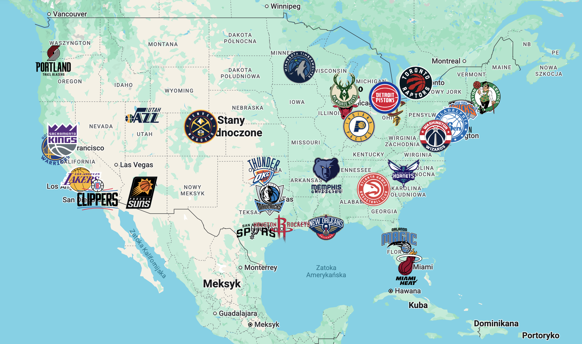 Zanim przejdziemy do popularności drużyn, to przypomnijmy sobie mapę Stanów Zjednoczonych z widocznym podziałem na stany oraz miejsca, lokalizacje, gdzie dokładnie znajduje się dana drużyna. Tak, tak, wiemy – Pelicans, Grizzlies i Wolves powinni grać na Wschodzie. Pewnie gdyby doszły dwie nowe drużyny w Seattle i Las Vegas, to dwie z tych trzech przesunięte zostałyby na Wschód.