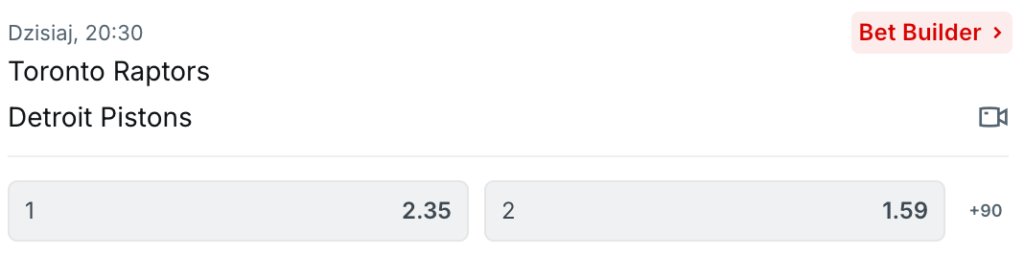 Trudno dziwić się kursom Superbet, które sugerują, że to Pistons będą tego wieczoru lepszą ekipą. Szanse Raptors nie są jednak przekreślone, co sugeruje oferta na poziomie 2.35.