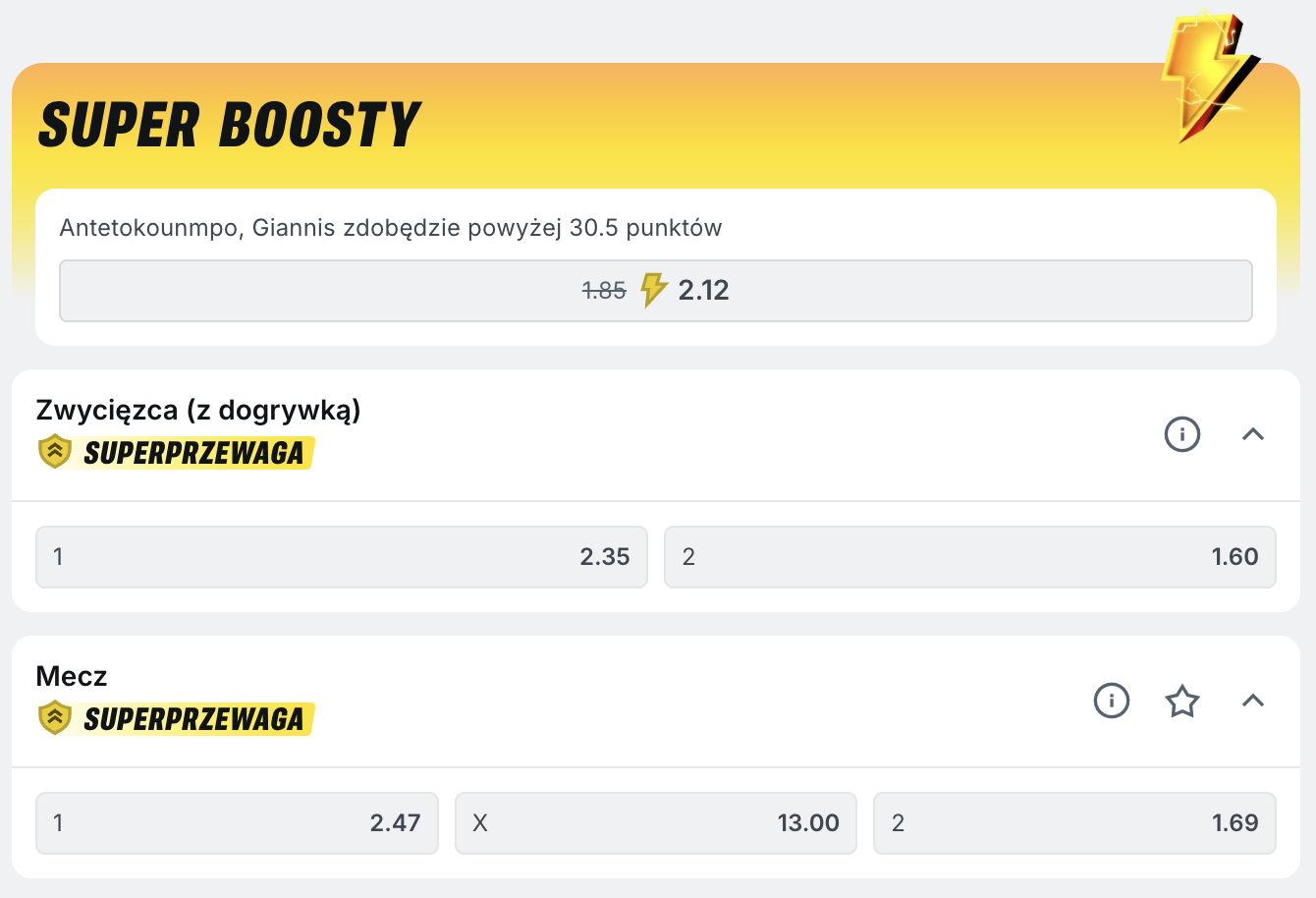 Druga sprawa to kwestia pojedynków gwiazd. Oczywistym, który przychodzi na myśl jest starcie Giannisa z Durantem, spodziewam się, że panowie nie zawiodą fanów i pokażą, co potrafią. Ekscytujący może okazać się również pojedynek Antetokounmpo z Sengunem. Ostatni raz gwiazdorzy grali przeciwko sobie w półfinale EuroBasketu, wówczas górą była Turcja. Środkowy Rockets nie szczędził po meczu uszczypliwości w stronę dwukrotnego MVP i chociaż zawodnicy formalnie się pogodzili, można założyć, że lider Bucks będzie chciał udowodnić młodszemu koledze to i owo. Superbet przewidział też dodatkowy zakład, który może zwiększyć kurs: w przypadku wspomnianego meczu jest to pytanie, czy Giannis rzuci więcej niż 30,5 punktu.