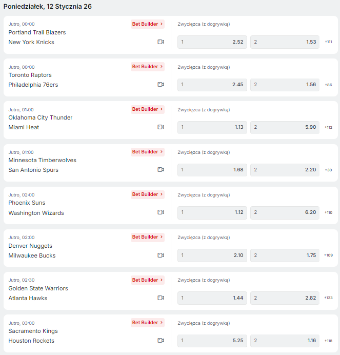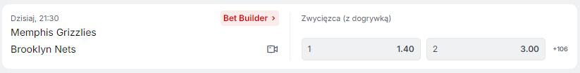 W ostatnich sezonach bezpośrednia rywalizacja drużyn była raczej wyrównana, ale biorąc pod uwagę stan drużyn Superbet ceni wyżej gospodarzy (Grizzlies). Mecz odbędzie się w FedExForum w Memphis i nie będzie transmitowany w polskiej telewizji. Aby obejrzeć dzisiejszy mecz o godz. 21:30 musisz mieć dostęp do NBA League Pass.