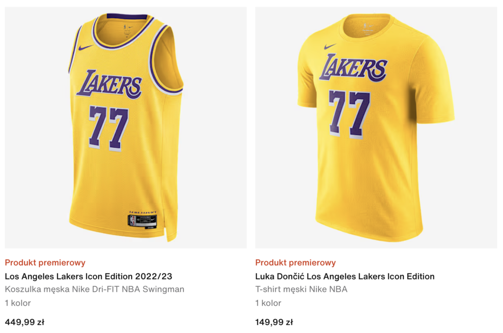 Mamy też coś ekstra! W końcu są koszulki meczowe Luki Doncicia z Lakers oraz t-shirty 77 Lakers! One nie są objęte zniżką, ale trudno się dziwić – totalna nowość. W końcu 🙂