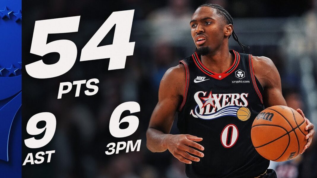 - Tyrese Maxey był tej nocy absolutnie nie do zatrzymania. Rozgrywający odnotował nowy rekord kariery w postaci 54 punktów (18/30 z gry, 6/15 za trzy), do czego dorzucił jeszcze dziewięć asyst, pięć zbiórek, trzy przechwyty i trzy bloki. Paul George dorzucił 21 oczek, pięć zbiórek, trzy asysty i dwa przechwyty. Skromnym double-double popisał się VJ Edgecombe (12 punktów, 10 zbiórek).