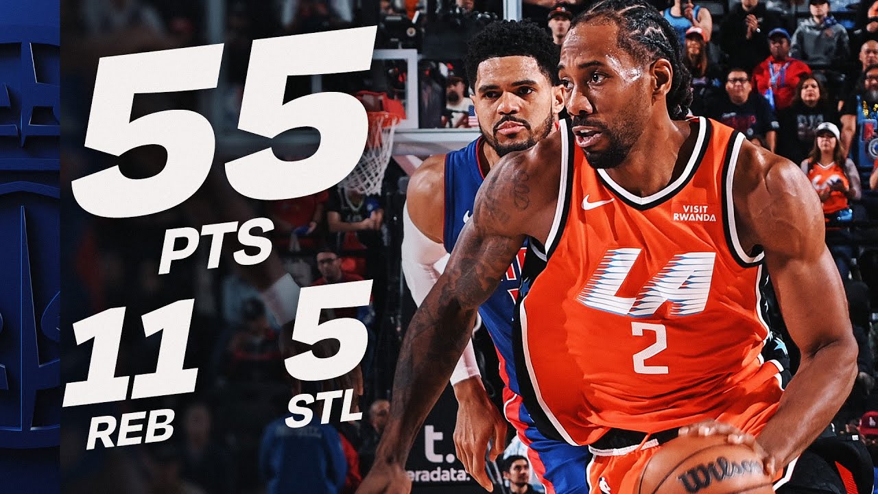 • Kawhi Leonard zanotował 55 punktów, 11 zbiórek i pięć przechwytów, prowadząc Clippers do czwartej wygranej z rzędu. Dla skrzydłowego był to jednocześnie rekord kariery pod względem zdobyczy punktowej. James Harden dołożył 28 punktów, siedem asyst i cztery zbiórki. Nicolas Batum miał 12 punktów i cztery zbiórki. Pozostali gracze Clippers nie przekroczyli granicy siedmiu punktów.